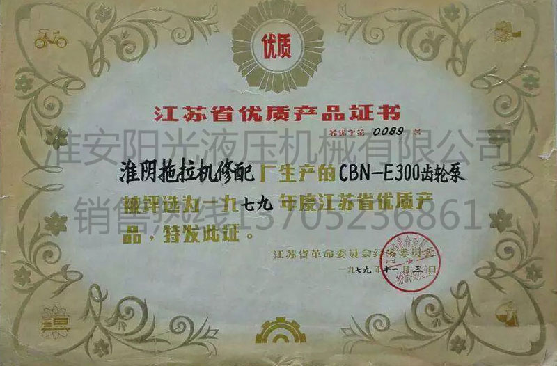 江蘇省優質產品證書