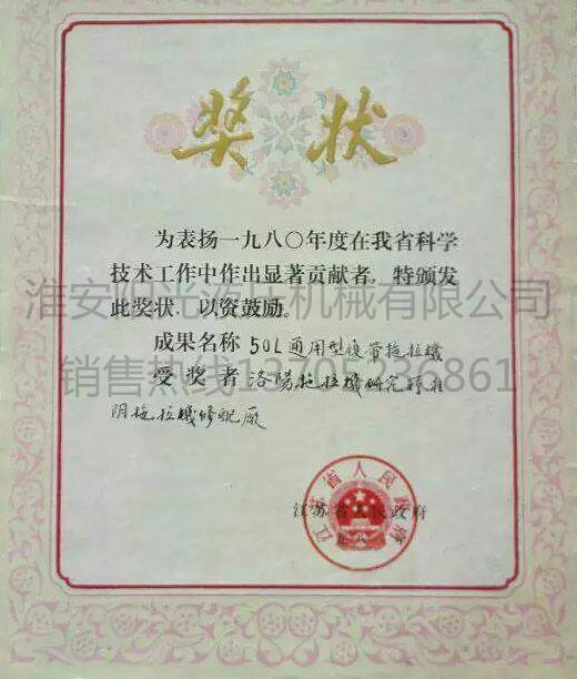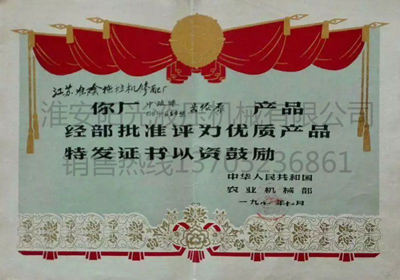 50L通用型履帶拖拉機獎狀